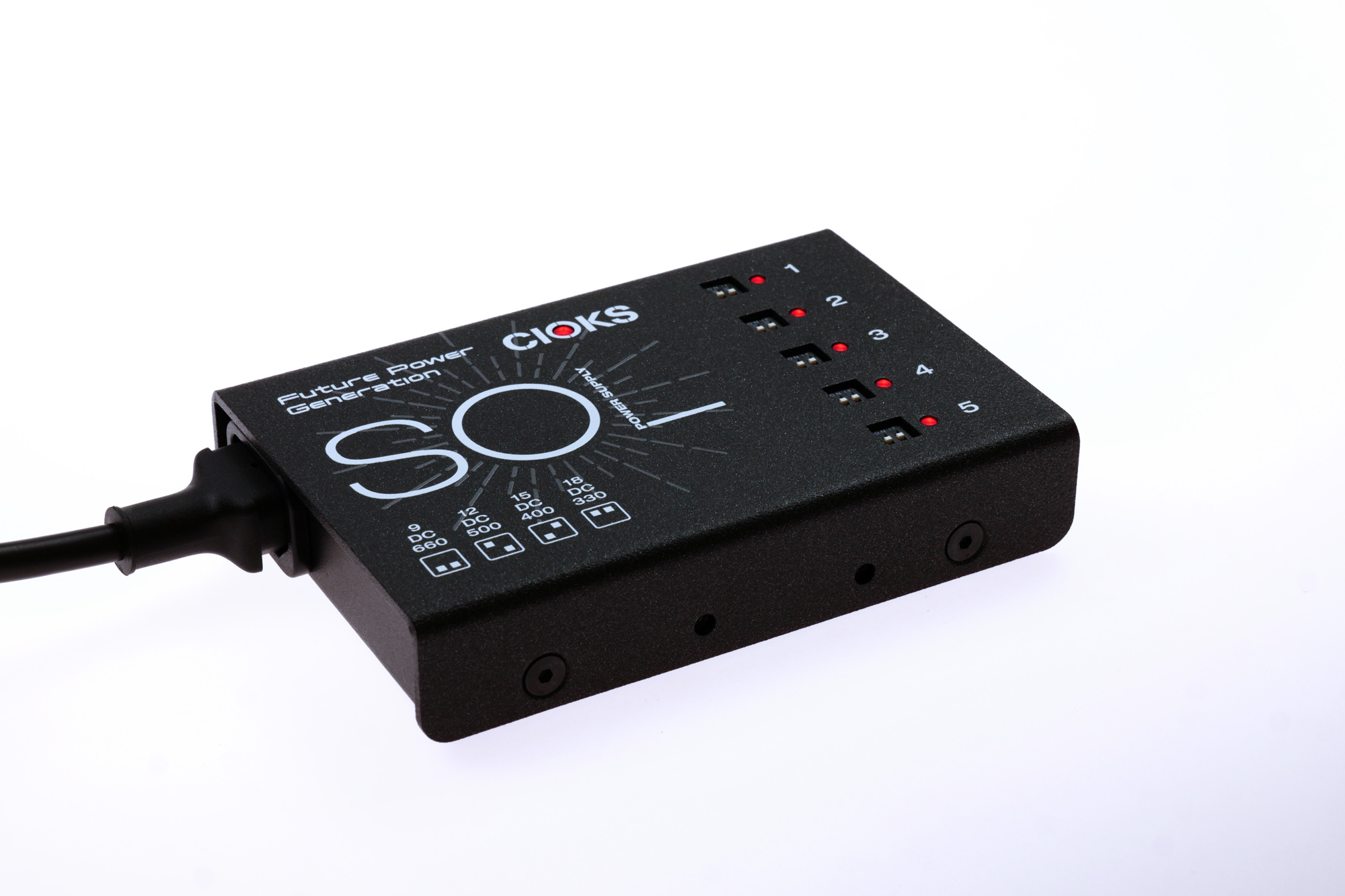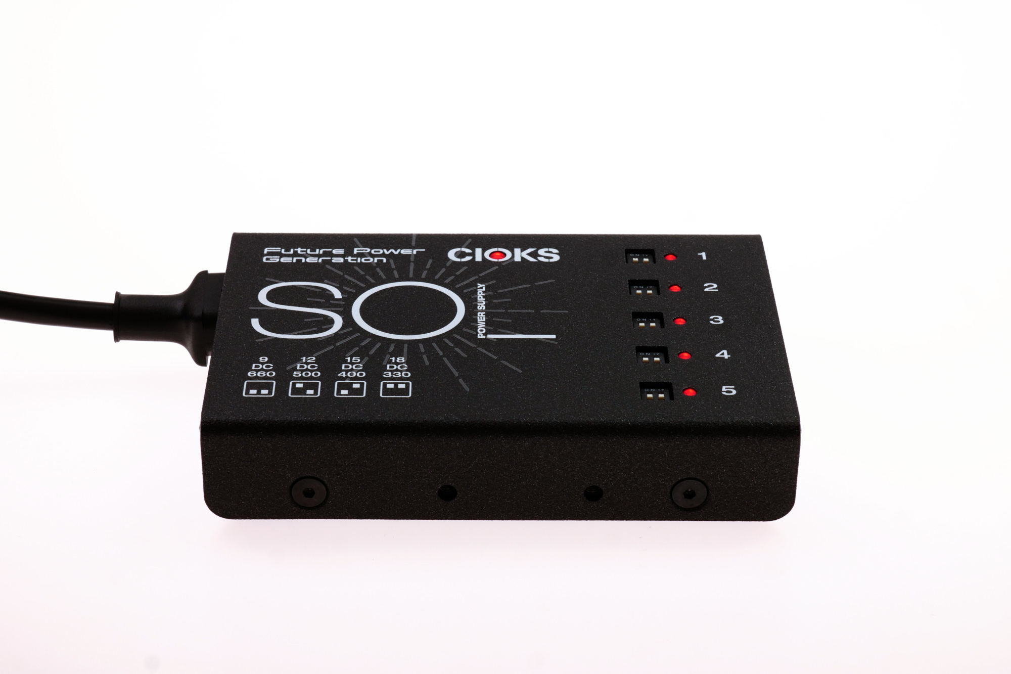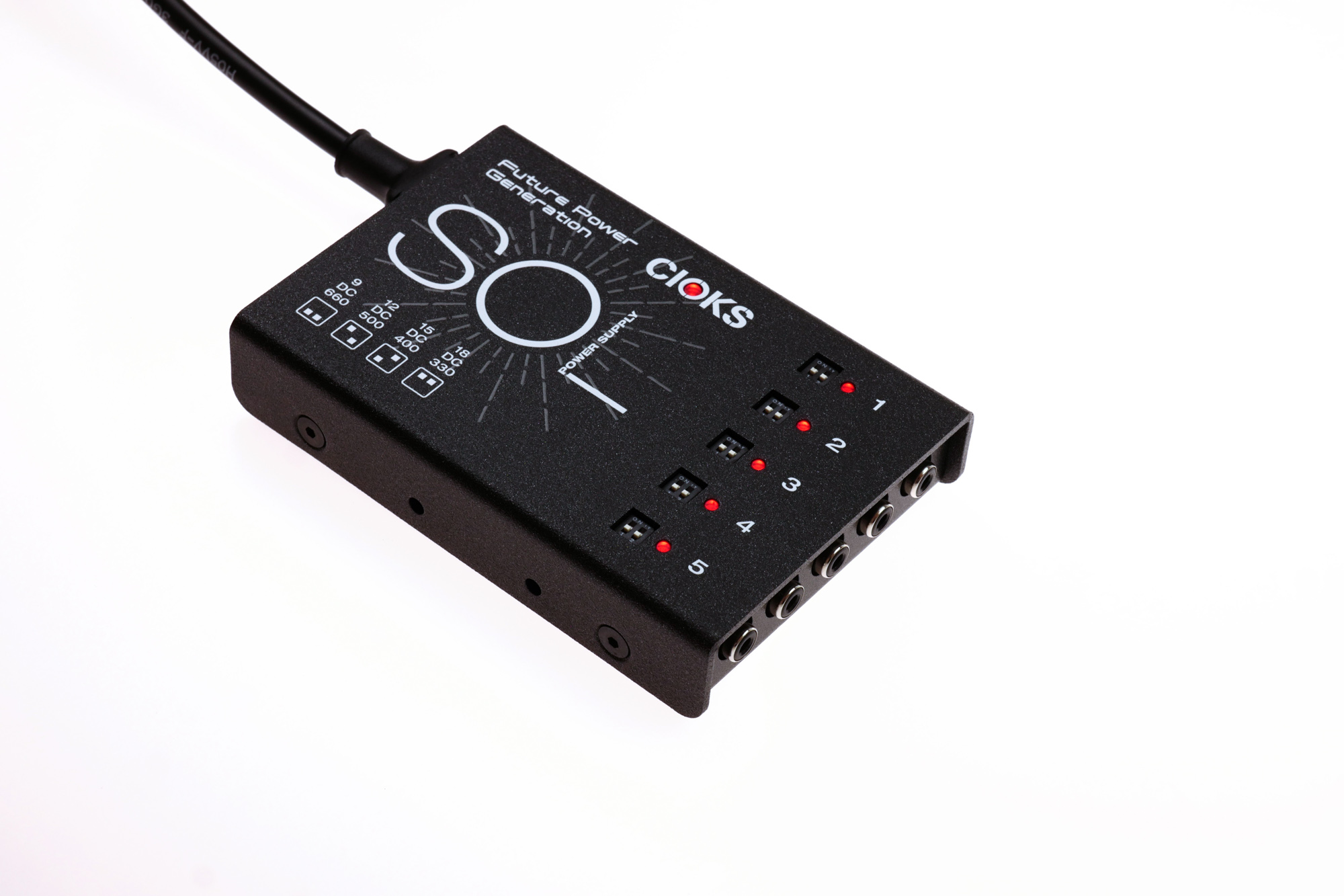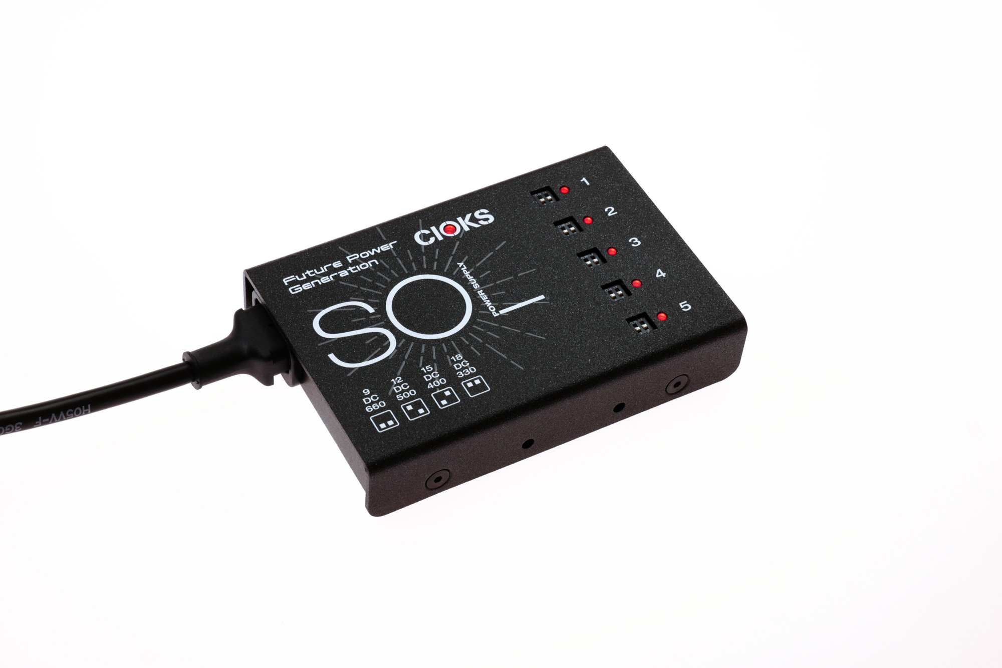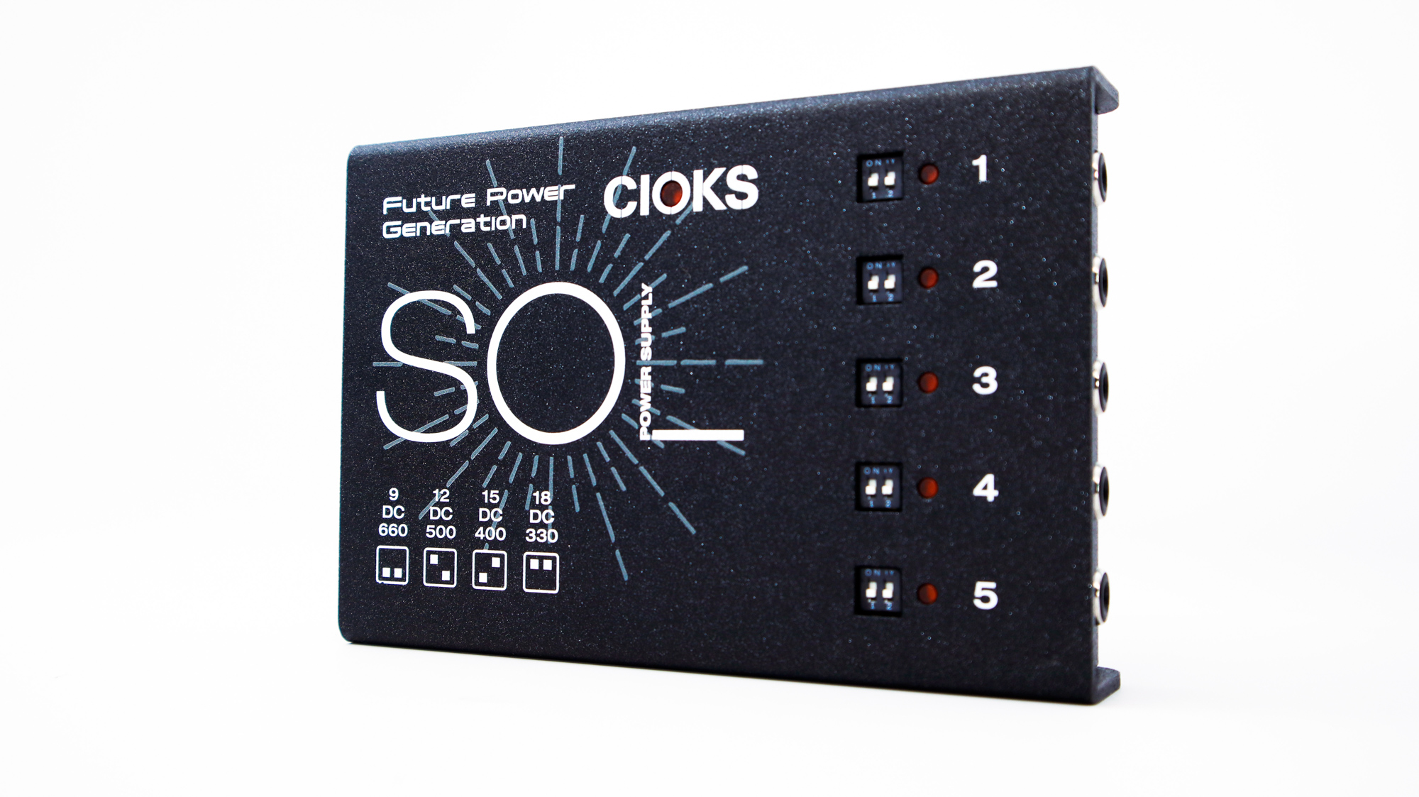 Featuring the same 660mA at 9V DC per outlet and four switchable voltages on each outlet as its bigger brother CIOKS DC7, SOL is the most powerful small form-factor power supply available today with a total of 30 watts of DC power available.